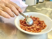 - 耐熱容器に【肉だね】の材料を入れて混ぜ、ふんわりラップをして電子レンジにかける(600Wで1~2分)