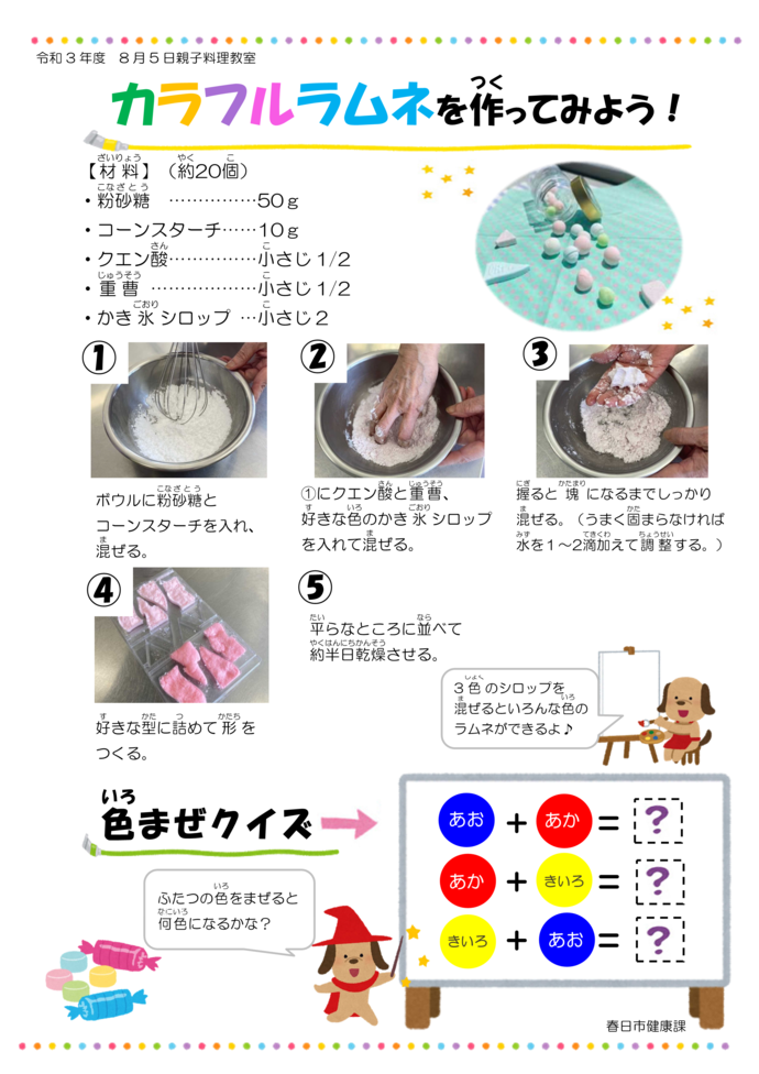 その原理を使ってシュワシュワのラムネを作ってみましょう。混ぜてこねるだけで簡単に作れるので、ぜひやってみてください。