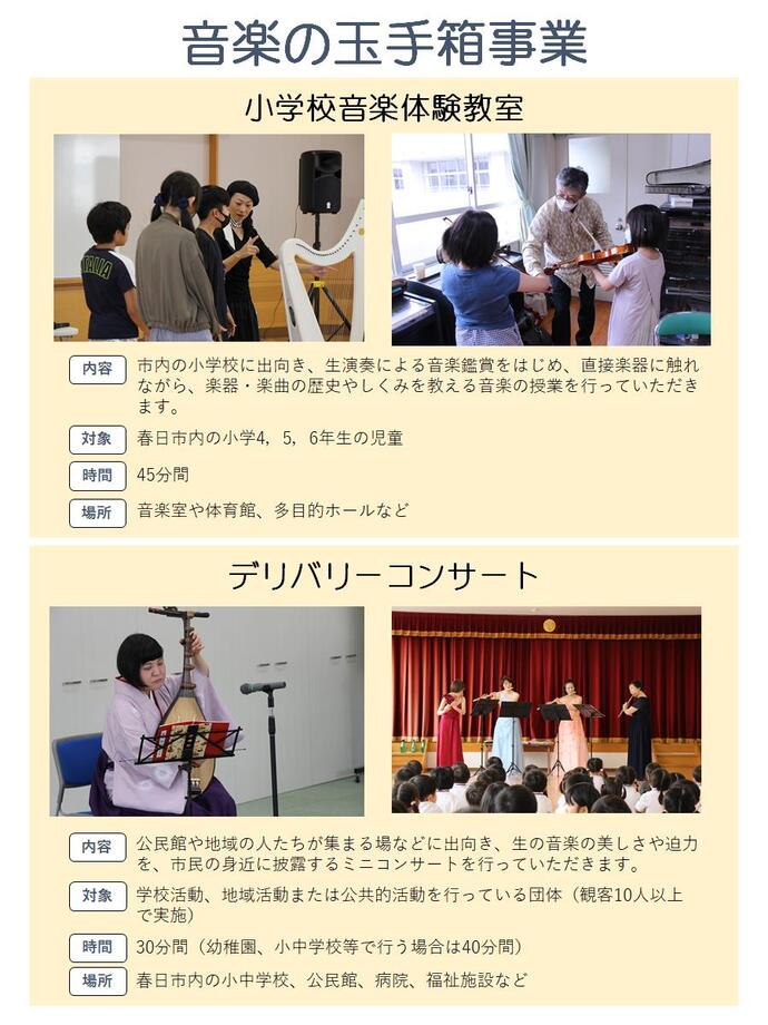 - 春日市内で音楽活動を行っている人または春日市内で音楽活動を行うことができる人